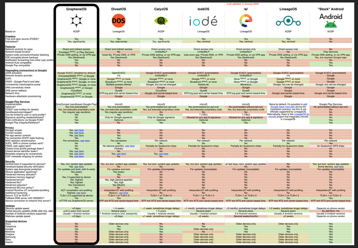 - Moins axé sur la sécurité pure comparé à GrapheneOS.