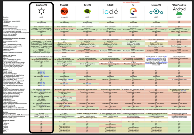 GrapheneOS, CalyxOS et LineageOS sont des systèmes d'exploitation alternatifs pour les smartphones, basés sur Android, mais chacun a ses propres particularités et objectifs. Voici une comparaison entre les trois, en français :
